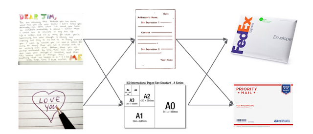 You pick the paper color, shape, size and layout. If the content of the message is short, you pick a small paper. If the content of the message has structure, you pick a more structured layout. If you are writing free-form, you pick a blank paper.